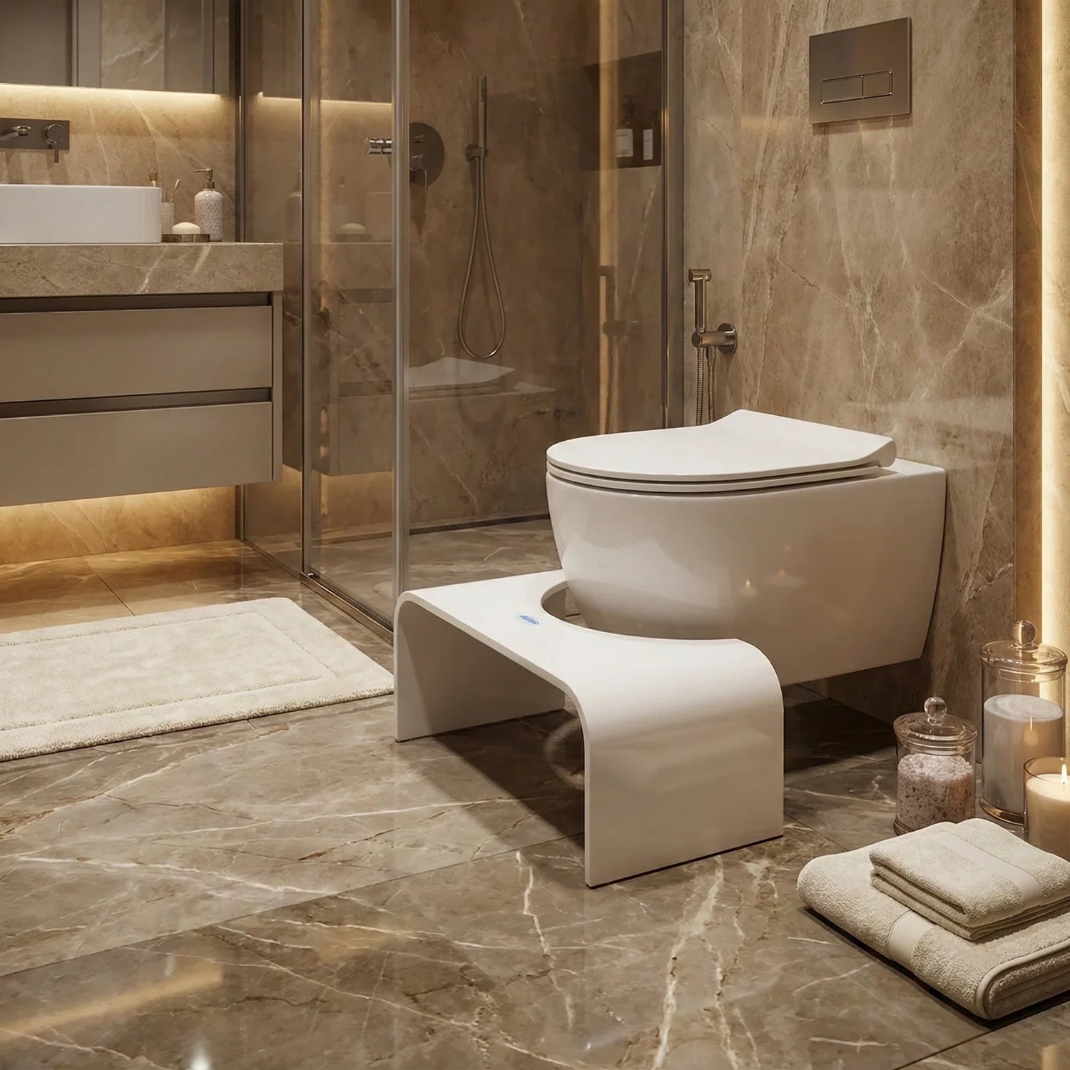 AlaTab™, modern tuvaletler için tasarlanmış ergonomik bir destek taburesidir. Doğru açı ile oturmanıza yardımcı olur, vücudu doğal pozisyona getirir ve daha hızlı, daha rahat bir tuvalet deneyimi sağlar. Dayanıklı yapısı ve minimal tasarımıyla her banyoda şık durur.