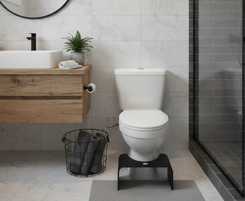 AlaTab™, tuvalette ayakları ideal açıya kaldırarak vücudu doğal çömelme pozisyonuna getirir. Bu sayede bağırsaklar daha rahat çalışır, zorlanma azalır ve daha konforlu bir tuvalet deneyimi sağlar.